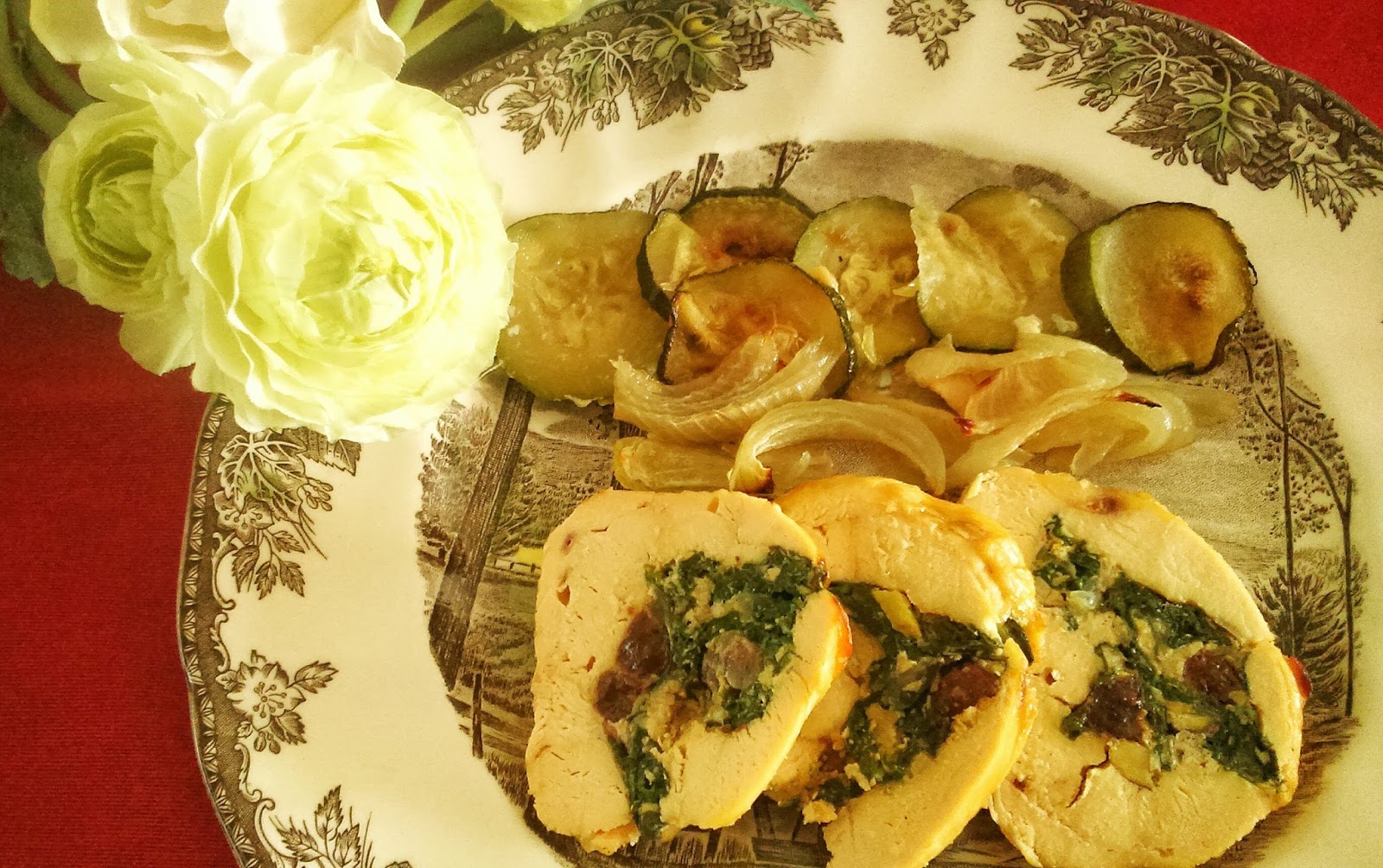 de calabacín colocamos encima la pechuga de pollo y la llevamos al horno